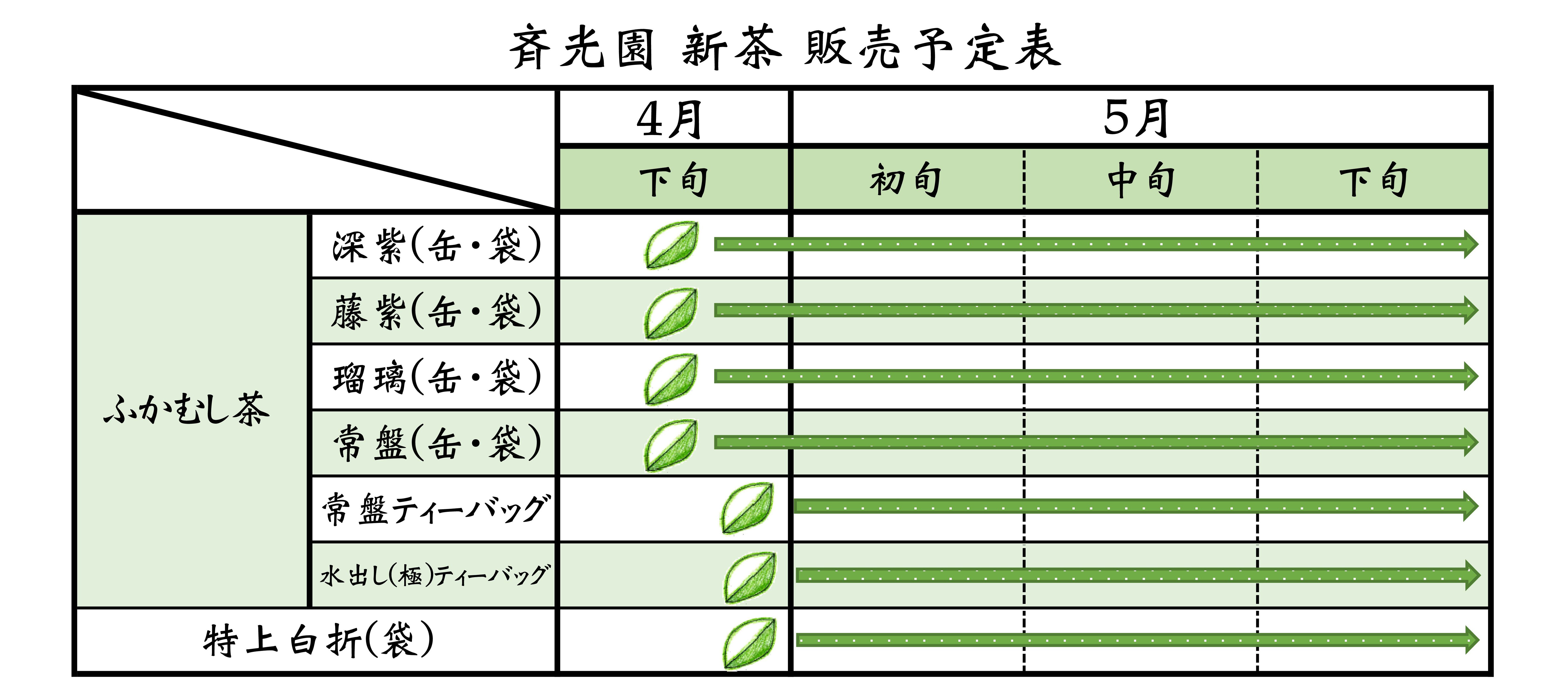 斉光園オンラインショップでは、4/22(水)に注文受付開始を予定しております。※出荷は4/23(木)以降を予定しております販売開始した新茶は販売ページに「若草色の新茶マーク」がつきます。また、製品パッケージにも「新茶シール」がつきます。販売まで少々お待ちください。